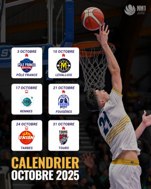 Retrouvez le calendrier du mois d'octobre avec 4 matchs à domicile et 2 déplacements :