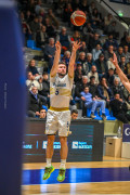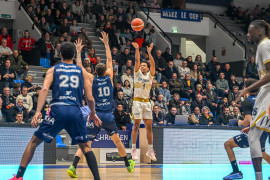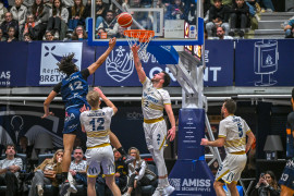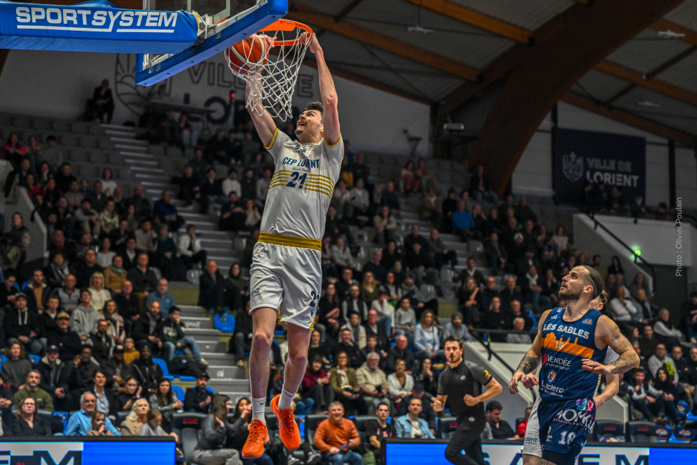 Dans ce duel âpre, souvent heurté, parfois décousu, Lorient a fini par s’imposer face aux Sables-d’Olonne. Une victoire qui ne fut ni facile ni linéaire, mais qui en dit long sur l’état d’esprit retrouvé d’un groupe qui avance encore comme un animal blessé : prudent, parfois fébrile, mais animé par un instinct de combat retrouvé. Les Lorientais ont rapidement su tirer profit des maladresses et des ballons perdus vendéens pour prendre les commandes de la rencontre. Les visiteurs, en manque de vigilance dans les duels défensifs, ont eu du mal à contenir les initiatives locales. Pourtant, loin de sombrer, les Sables-d’Olonne sont restés au contact, recollant au score juste avant la pause grâce à l’adresse de leurs principaux scoreurs. Au retour des vestiaires, Lorient repartait avec de meilleures intentions, parvenant à se constituer une légère avance grâce à une belle réussite extérieure et à une baisse de régime passagère des visiteurs. Et notamment un duo d’intérieurs en mode « démolisseur ». Mais les vieux démons n’étaient jamais loin. Une nouvelle baisse d’intensité en jeu et une petite succession de maladresses, au mauvais moment, permettait aux Vendéens de se relancer une fois encore. Le dernier quart-temps fut électrique. Les Sables-d’Olonne appuyaient franchement sur l’accélérateur, mettant l’équipe locale sous pression. À trois reprises, les visiteurs eurent l’occasion de passer devant. Mais comme souvent en basket, revenir est une chose, prendre l’avantage en est une autre. Lorient a vacillé, connu un très léger trou d’air, vite colmaté par un effort collectif remarquable. Thomas Le Roux faisait tourner son effectif, et les Lorientais s’arrachaient avec énergie pour reprendre une courte avance qu’ils conservaient jusqu’au buzzer final.