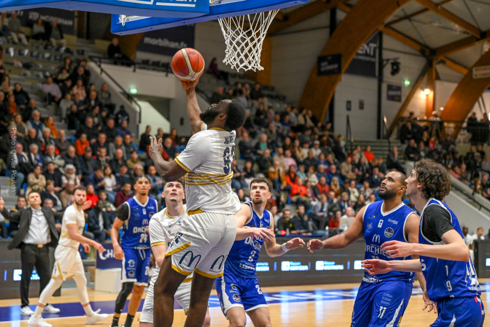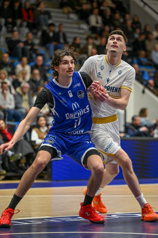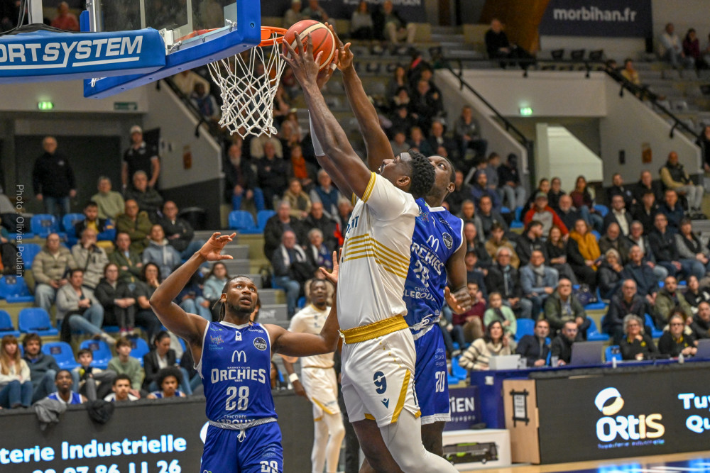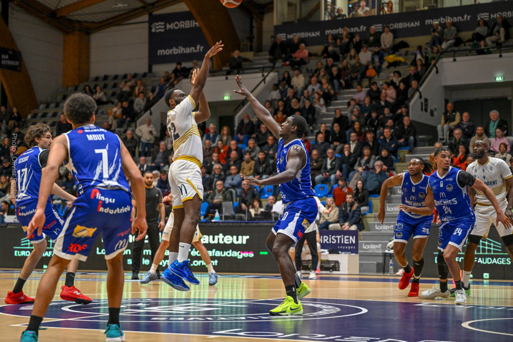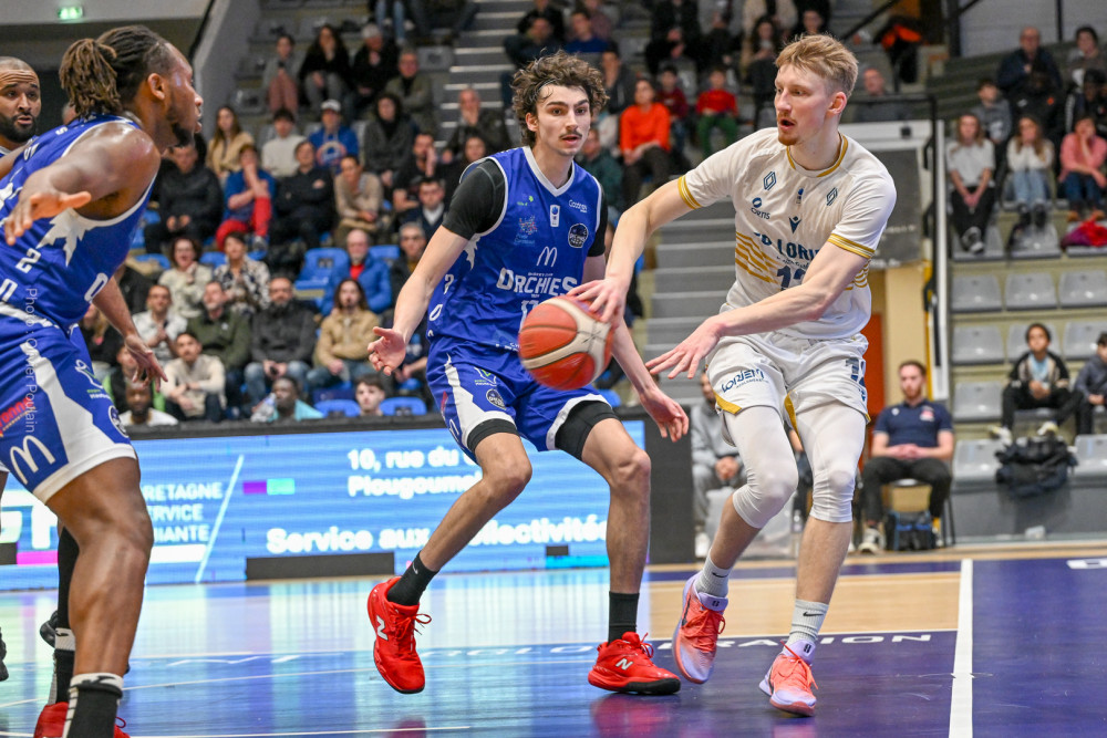 Lorient a en effet pris la rencontre par le bon bout, grâce notamment à un Kevin Franceschi très inspiré. L’ailier a montré l’exemple dans un premier acte maîtrisé par les locaux, profitant aussi d’un début de match compliqué pour Orchies, entre maladresse offensive et défense parfois hésitante. Les Lorientais en ont profité pour creuser un écart conséquent et poser les bases de leur succès. Mais la suite du match a été bien plus disputée. Passé ce premier quart-temps, Orchies n’a jamais cessé de courir après le score, revenant même à une ou deux possessions à plusieurs reprises. L’avance initiale de quinze points s’est progressivement réduite, les visiteurs retrouvant de l’adresse et haussant nettement leur intensité défensive. À la pause, l’écart n’était déjà plus que de huit unités, preuve que la rencontre s’était totalement rééquilibrée. La deuxième mi-temps s’est alors transformée en véritable bras de fer. Les deux équipes se sont longtemps neutralisées dans un jeu parfois haché, conséquence d’une pression défensive plus marquée et d’approximations de part et d’autre. Orchies, fort de plusieurs individualités capables de faire basculer un match, s’est montré constamment menaçant. Le suspense est encore monté d’un cran dans le dernier quart-temps. Les Nordistes, toujours combatifs, ont continué d’y croire et sont logiquement revenus à une petite longueur (71-70). Lorient se retrouvait alors sous pression, cherchant des solutions face à une défense d’Orchies particulièrement agressive. C’est finalement Maxime Choplin qui a su trouver l’ouverture au meilleur moment. Alors que son adresse n’avait pas toujours été au rendez-vous jusque-là, l’arrière lorientais a inscrit un tir précieux permettant aux siens de reprendre un peu d’air dans les dernières minutes (76-70). L’écart restera ensuite suffisant pour permettre aux Morbihannais de conserver leur avance jusqu’au coup de sifflet final.